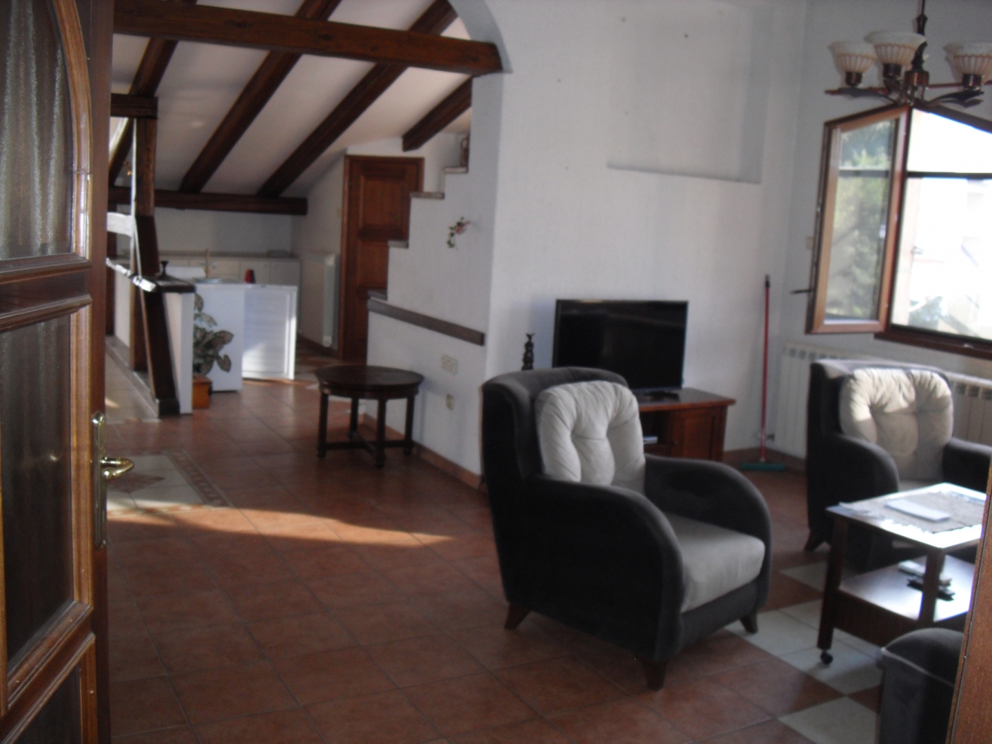 RIJEKA, KRIMEA - 125 m2-es második emeleti lakás Eladó egy második emeleti lakás, összesen négy lakóegységgel. Előszobából, rendkívül tágas nappaliból konyhával, étkezővel és nappalival, egy háztartási helyiségből, két hálószobából saját fürdőszobával, egy WC-ből és egy tengerre néző loggiából áll. A lakás minden bútorral és berendezéssel együtt eladó, különleges benyomást keltenek a vörösfenyőből készült fa gerendák, a hatalmas étkezőasztal és a nappaliban található kandalló. A fűtés központi, elektromos, radiátorokkal, a nappaliban és a hálószobákat összekötő előszobában pedig két klímaberendezés biztosítja a hűtést.