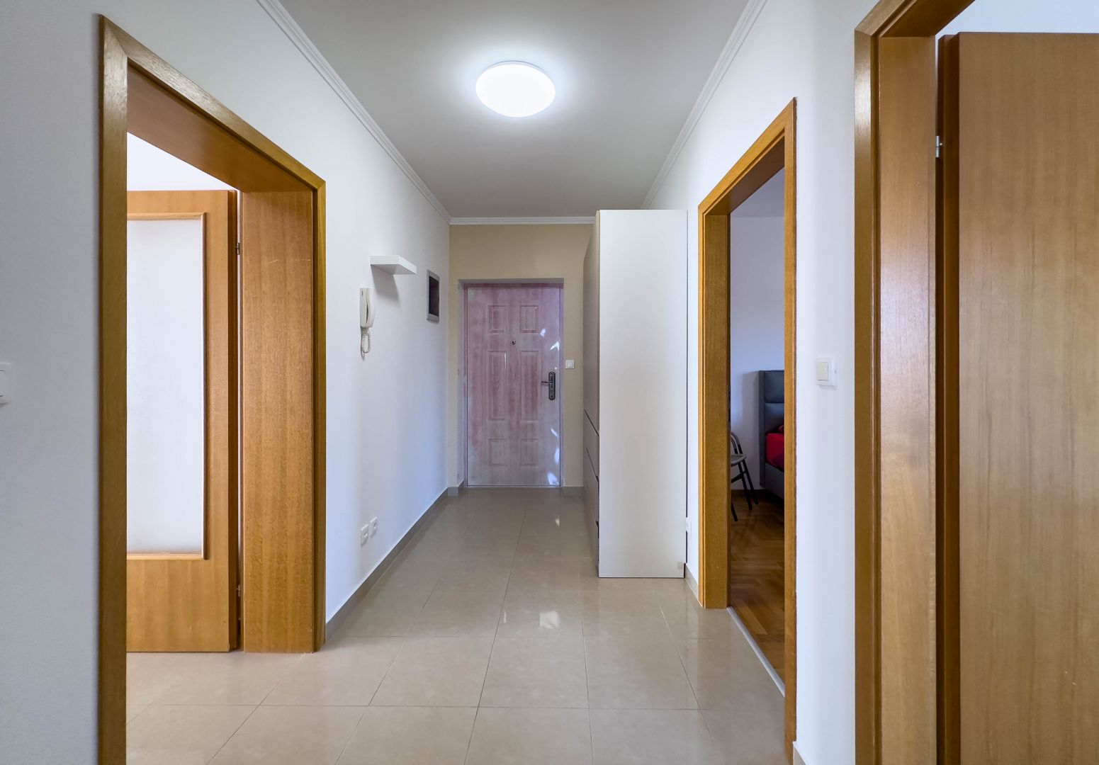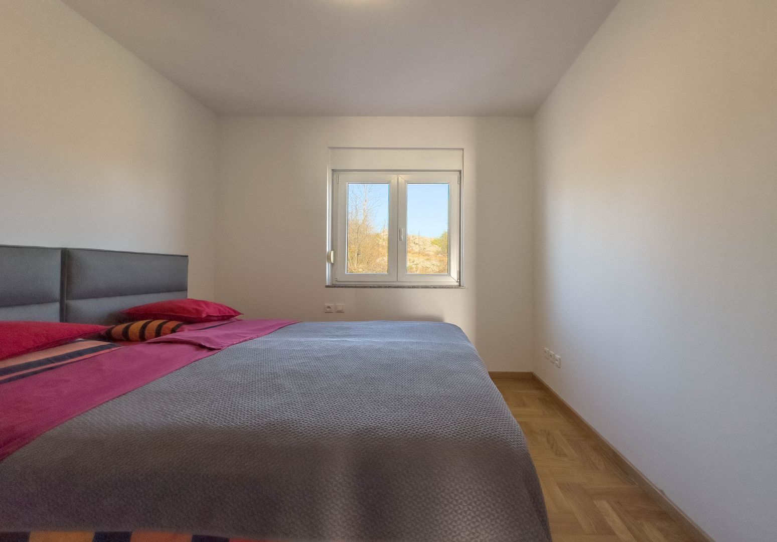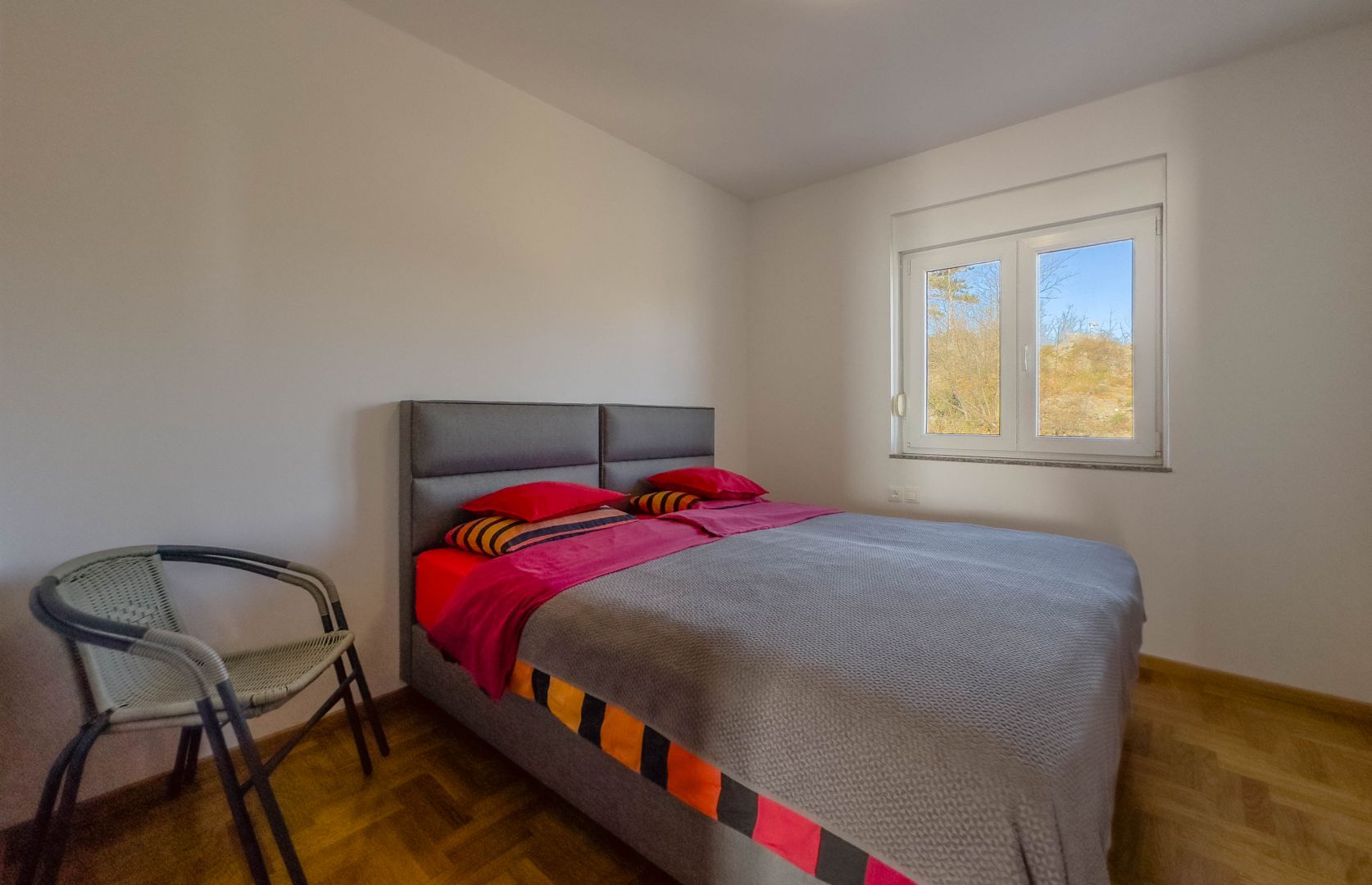 Kínáltunk egy bútorozott lakást egy takaros, mindössze hét lakóegységből álló kis épület első emeletén, amely csendes, privát környezetet biztosít. Található benne két kényelmes hálószoba, egy tágas nappali konyhával és étkezővel, egy háztartási helyiség, egy fürdőszoba és egy előszoba. A lakás rendkívül világos és szellős, és a lakás legszebb része minden bizonnyal a terasz, amelyről lenyűgöző panoráma nyílik a Kvarnerre és a környező természetre, ideális a pihenésre a nap bármely szakában. A lakáshoz a földszinten egy fáskamra tartozik, a további kényelem érdekében két parkolóhely is biztosított. Említést érdemel még a közös kert grillezővel és pavilonnal. Fűtése pellet és padlópadlós, mely egész évben komfortos hőmérsékletet biztosít, valamint a nyári hónapokra klíma is van a lakásban. A lakás elhelyezkedése rendkívül kedvező, csendes környéken található, de közel van minden fontosabb szolgáltatás, mint például iskola, üzlet és tömegközlekedés, így ez a lakás tökéletes választás a családi élethez. Ideális azok számára, akik békét szeretnének élvezni, ugyanakkor közel vannak minden városi szolgáltatáshoz.