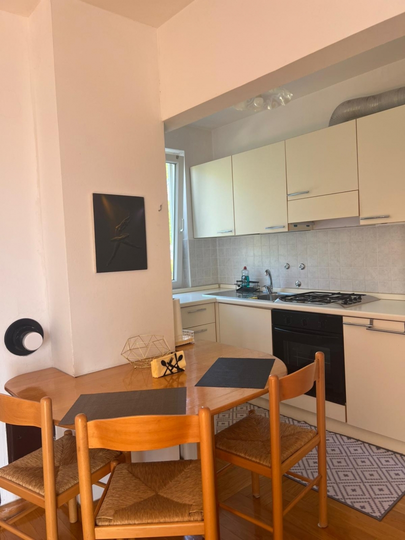 A DUX ingatlan kínálatában egy nagyszerű helyen található apartmant kínálunk Önnek, kilátással a tengerre! A lakás egy 1981-ben épült épületben található, amelynek utolsó felújítása 2016-ban történt. A lakás egy előszobából, egy nagyobb nappaliból étkezővel és egy konyhából áll, ahonnan egy gyönyörű teraszra nyílik kilátás, ahonnan panorámás kilátás nyílik a tengerre! A fentieken kívül a lakásban két hálószoba és egy fürdőszoba található. A lakás bútorozottan eladó! A fűtést és a hűtést légkondicionáló oldja meg. HELYSZÍN: A lakás csendes helyen található, légvonalban 250 méterre az első strandtól. A lakás tájolása az egyik oldalon a tengerre, míg a másik oldalon a természet felé néz. Üzletek és minden egyéb szolgáltatás 5 perces autóútra található. DOKUMENTÁCIÓ: Az épület C energetikai tanúsítvánnyal rendelkezik. Tulajdonjog 1/1. Nincs teher. További információkért és egy túra megszervezéséhez forduljon hozzánk bizalommal.