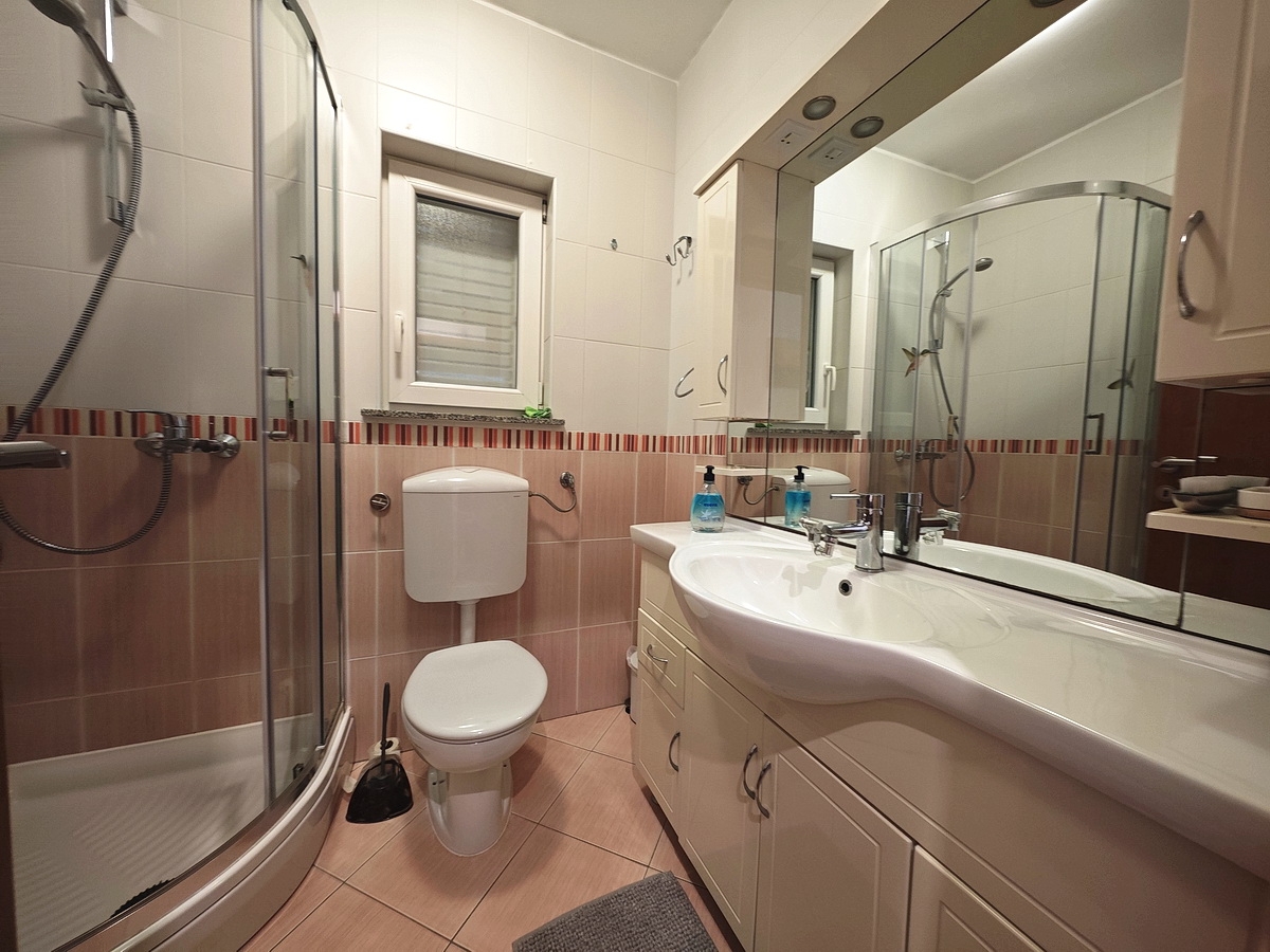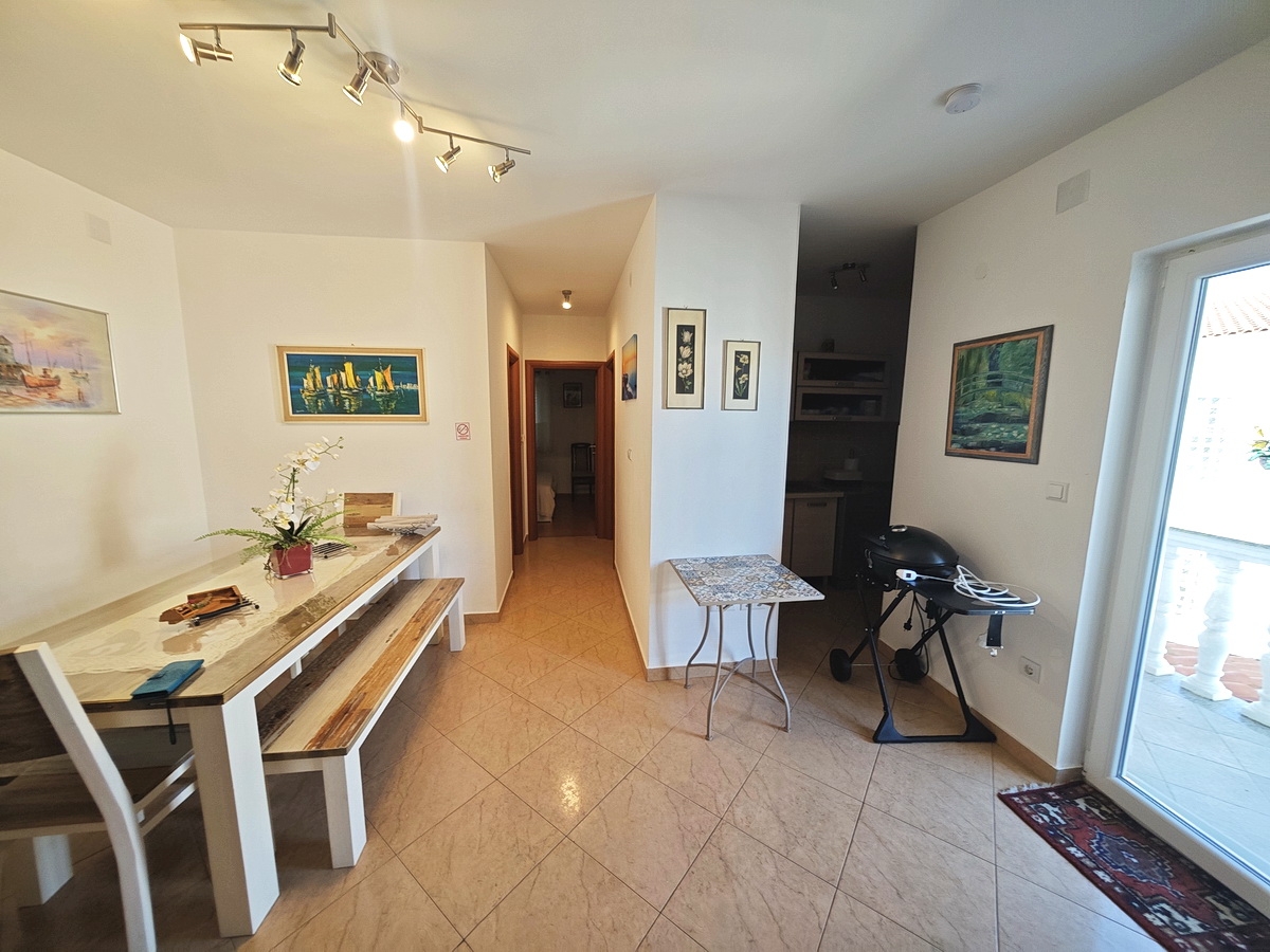A Stan Grad Immobilien kínálatában kiemelkedik egy nagyon szép lakás, amely a Horvátországban található, magas minőségű és kívánatos tengerparti helyszínen, Krk szigetén található. A szóban forgó ingatlan egy rendkívül vonzó helyen helyezkedik el a Soline-öbölben, és kényelmes gyalogos távolságra van a strandtól. Ez az ingatlan egy tágas, kétszintes lakás, amely egy szép, jó minőségű épület első és második emeletén található. A lakás teljes területe 84 m². Az első emeleten található egy előszoba, egy fürdőszoba, egy nappali és étkező konyhával, két hálószoba és egy fedett erkély. A tetőtérben nappali, hálószoba és fürdőszoba található. Az ingatlan belső tere nagyon jól karbantartott és teljesen felszerelt a szükséges technikai eszközökkel és kiváló minőségű bútorokkal. A lakás birtoklása magában foglalja az épület közös udvarának használatát is. A lakás tulajdonosa egy parkolóhelyet fog rendelkezésére. Az előzőleg említett szerkezeti jellemzők mellett nem szabad figyelmen kívül hagyni az ingatlan kiváló tájolását, amely kellemes kilátást biztosít a tengerre és a természeti tájra. Ez a lakás egy magánszemély tulajdonában van, és a vásárlónak 3%-os ingatlanadó befizetésére van szüksége a tulajdonjog átruházása során. Az eladó garantálja a tulajdonjog gyors átruházását a vásárlóra. Örömmel fogadjuk Önt és segítünk Krk szigetén. Ha nálunk vásárolja meg az ingatlant, a szakértő és barátságos csapatunk minden szükséges adminisztratív feladatban segít a tulajdonjog átruházásában és az ügyfélszolgálati számlák nevére történő átvitelében.