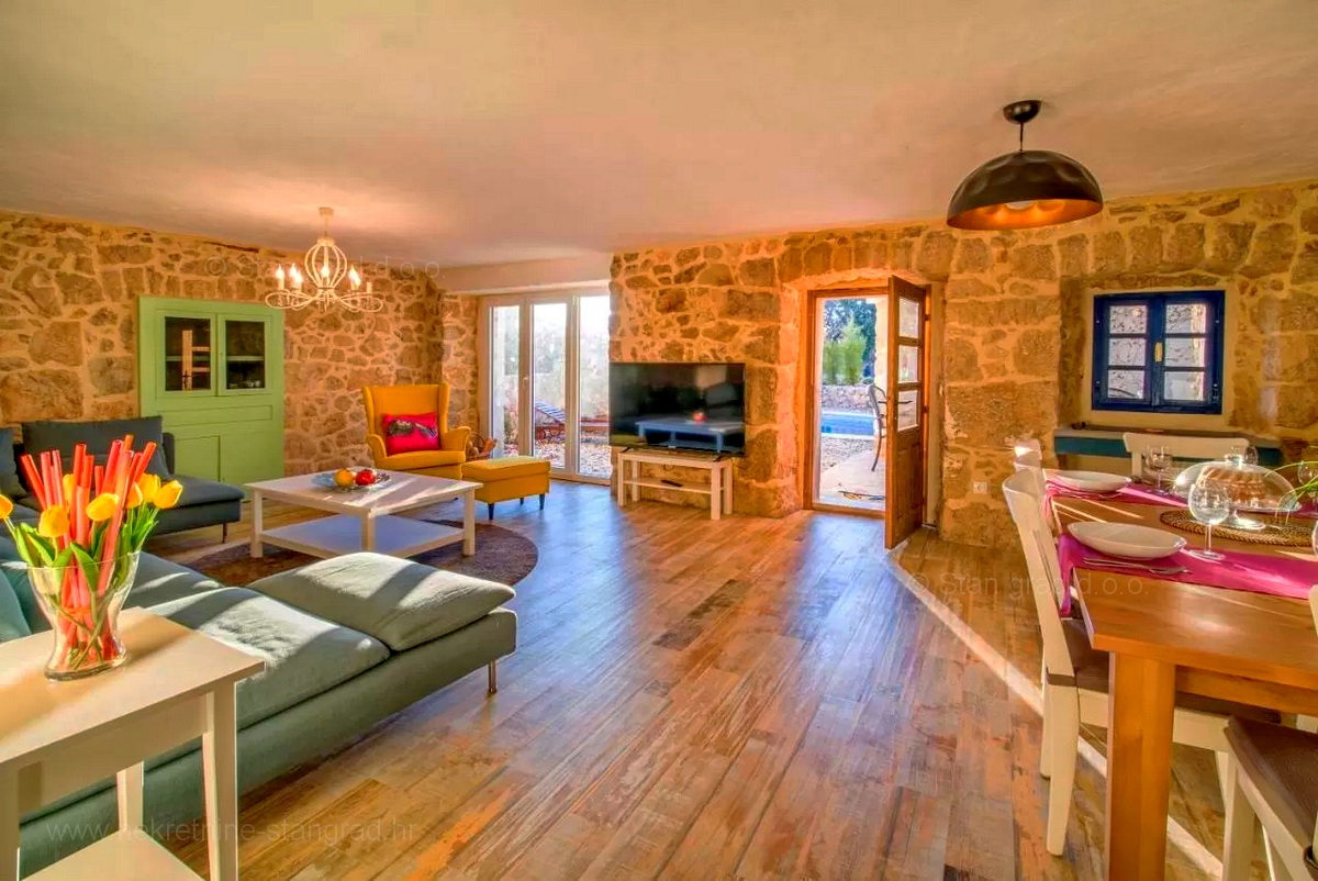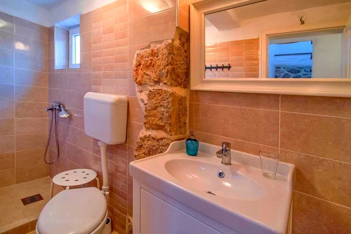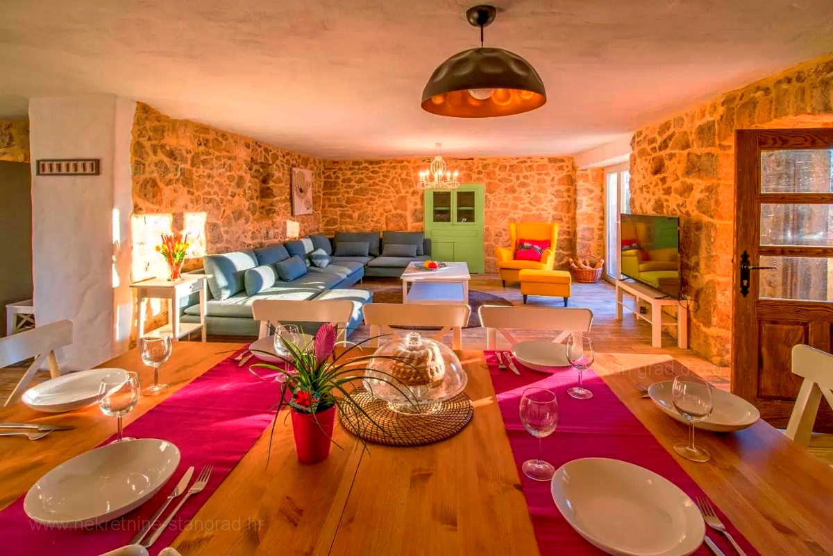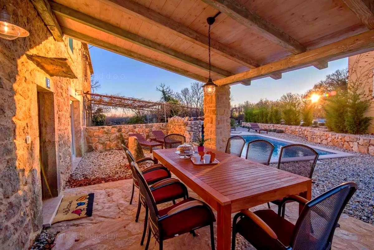 A Stan Grad Immobilien ügynökség jó ingatlan-kínálatából egy gyönyörű romantikus kőházat emeltek ki a Krk-sziget régiójában. Az ingatlan Vrbnik közelében található, olyan helyen, ahol élvezheti a természet zöldjét és a békét. Ez a gyönyörű, jó minőségű ház 2 emeleten épült. A földszint és az első emelet áll. A ház teljes területe 150 m2. Nagyon ízlésesen berendezett. Ezen a területen nappali és konyha, 3 hálószoba, 2 fürdőszoba, 1 WC és 1 fedett terasz található. Az ingatlanhoz gyönyörűen parkosított kert tartozik, ahol vízeséssel ellátott medence és napozóterasz található. Az ingatlan udvarán helyet kapott a járművek kényelmes parkolása. A fentieken kívül nem elhanyagolható azt mondani, hogy a ház gyönyörű kilátást nyújt a természetes növényzetre, a pihenés igazi béke oázisára. Ez az ingatlan természetes személy tulajdonában van. A ház eladója garantálja a teljes tulajdonosi dokumentumokat és az ingatlan megfelelő átruházását. A Stan Grad Immobilien irodai ügynökei segítenek a ház nyilvántartásában és minden más adminisztrációs feladatban.Ingatlan adatok