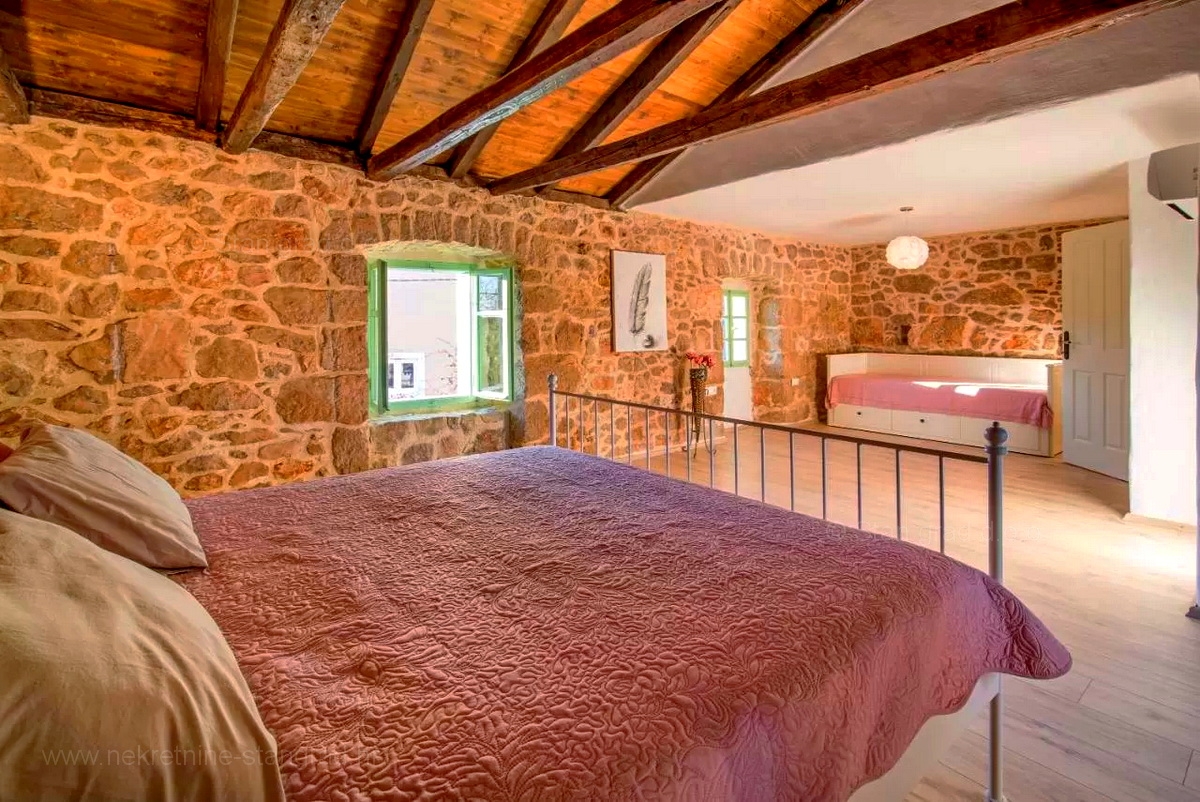 A Stan Grad Immobilien ügynökség jó ingatlan-kínálatából egy gyönyörű romantikus kőházat emeltek ki a Krk-sziget régiójában. Az ingatlan Vrbnik közelében található, olyan helyen, ahol élvezheti a természet zöldjét és a békét. Ez a gyönyörű, jó minőségű ház 2 emeleten épült. A földszint és az első emelet áll.